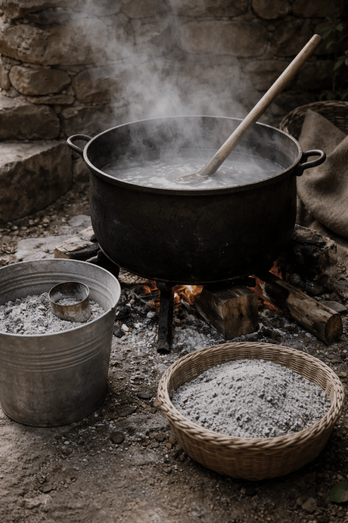 - Αλισίβα ή σταχτόνερο — παρασκευή και ιδιότητες του παραδοσιακού καθαριστικού: