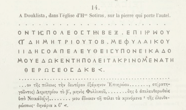 Heuzey, L. (1860). Le Mont Olympe et l’Acarnanie : exploration de ces deux régions, avec l’étude de leurs antiquités, de leurs populations anciennes et modernes, de leur géographie et de leur histoire. Paris: Firmin Didot frères, fils et Cie, pp. 473–474.