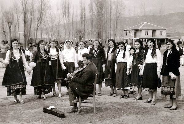 On the afternoon of Lazarus Saturday, the women of Doliche—mainly the younger ones—dressed in the traditional Lazarine costume (white skirts, black or red sarafani—a vest-like blouse—and white headscarves) danced Lazarus songs in the central square until nightfall.